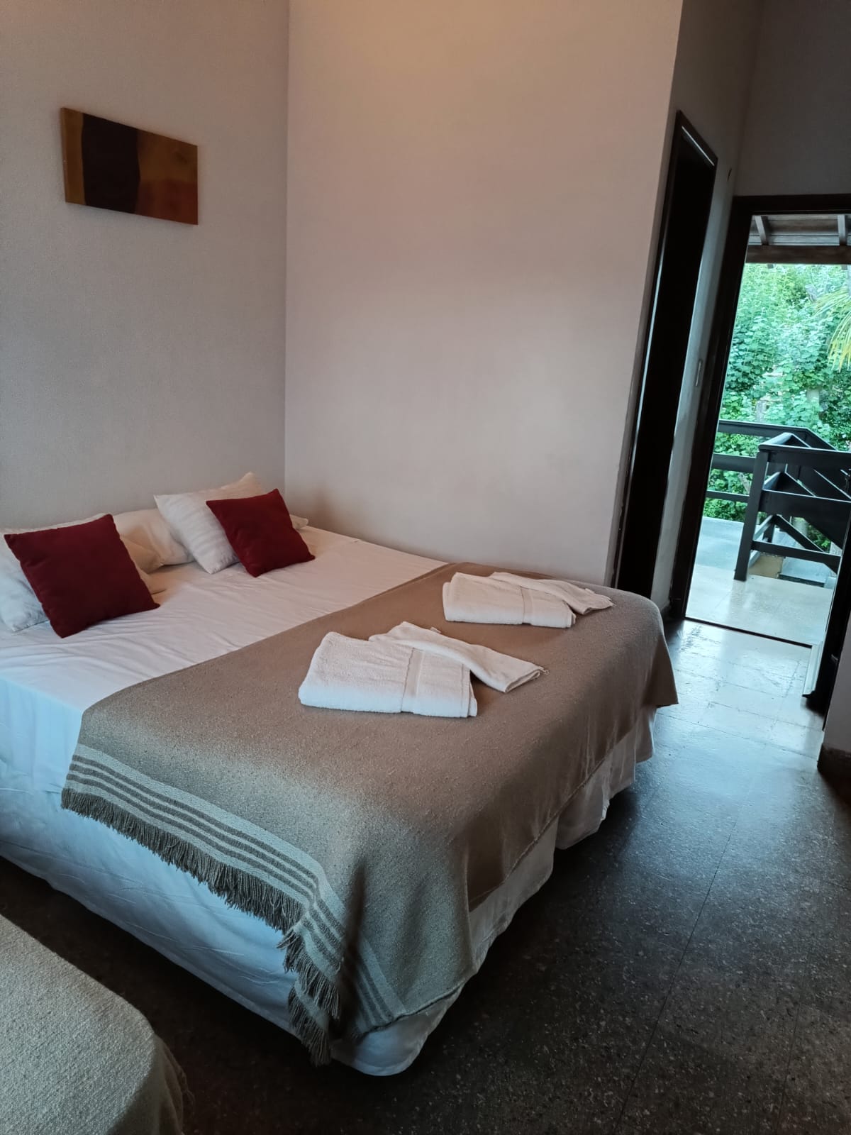 Ambiente cómodo, con buena ventilación e iluminación natural. Sommier doble mas otro individual o tres sommiers individuales, con placard. Baño privado completo pequeño, con amenities de tocador. Servicio de limpieza - ropa blanca con cambio diario. Televisor led 24', caja de seguridad y ventilador de techo. Triple especial: Con la misma descripción que la anterior, se agrega otro pequeño ambiente con heladera tipo frigobar para uso propio, anafe, microondas y mesa con sillas-banqueta (consultar precios)